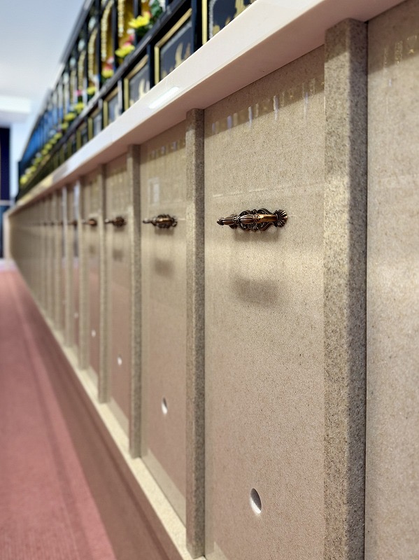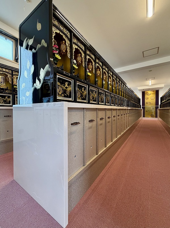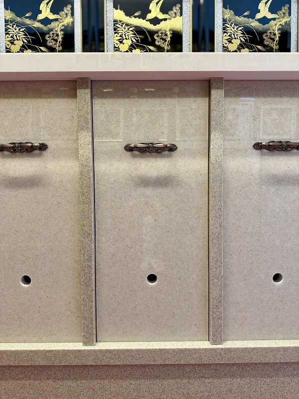 このたび、山口県下関市にある教法寺様の納骨堂にて、新たに整備された納骨ブースの製作を担当させていただきました。本案件は、寺院や文化施設など数多くの造作を手がける〝株式会社 はせがわ美術工芸〟さまよりご依頼をいただいたもので、私たちが従来製作に携わっている商業施設とは異なり、静寂や祈りに寄り添う「厳粛さ」が求められる領域への取り組みとなりました。